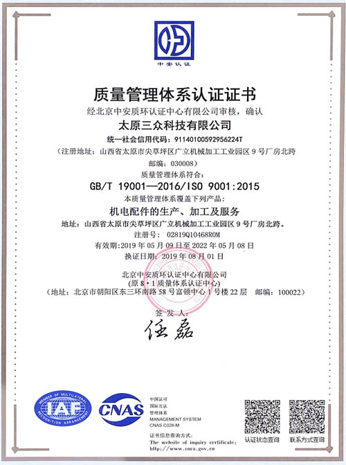 三眾純鐵-質量管理體系證書